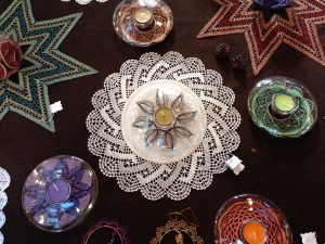 Produco oggetti in tombolo sul cuscino piatto, dal sapiente intreccio di fili di lino, a volte anche di seta o altri materiali, nascono centrotavola, tendine, oggetti decorativi che ricordano le antiche arti.